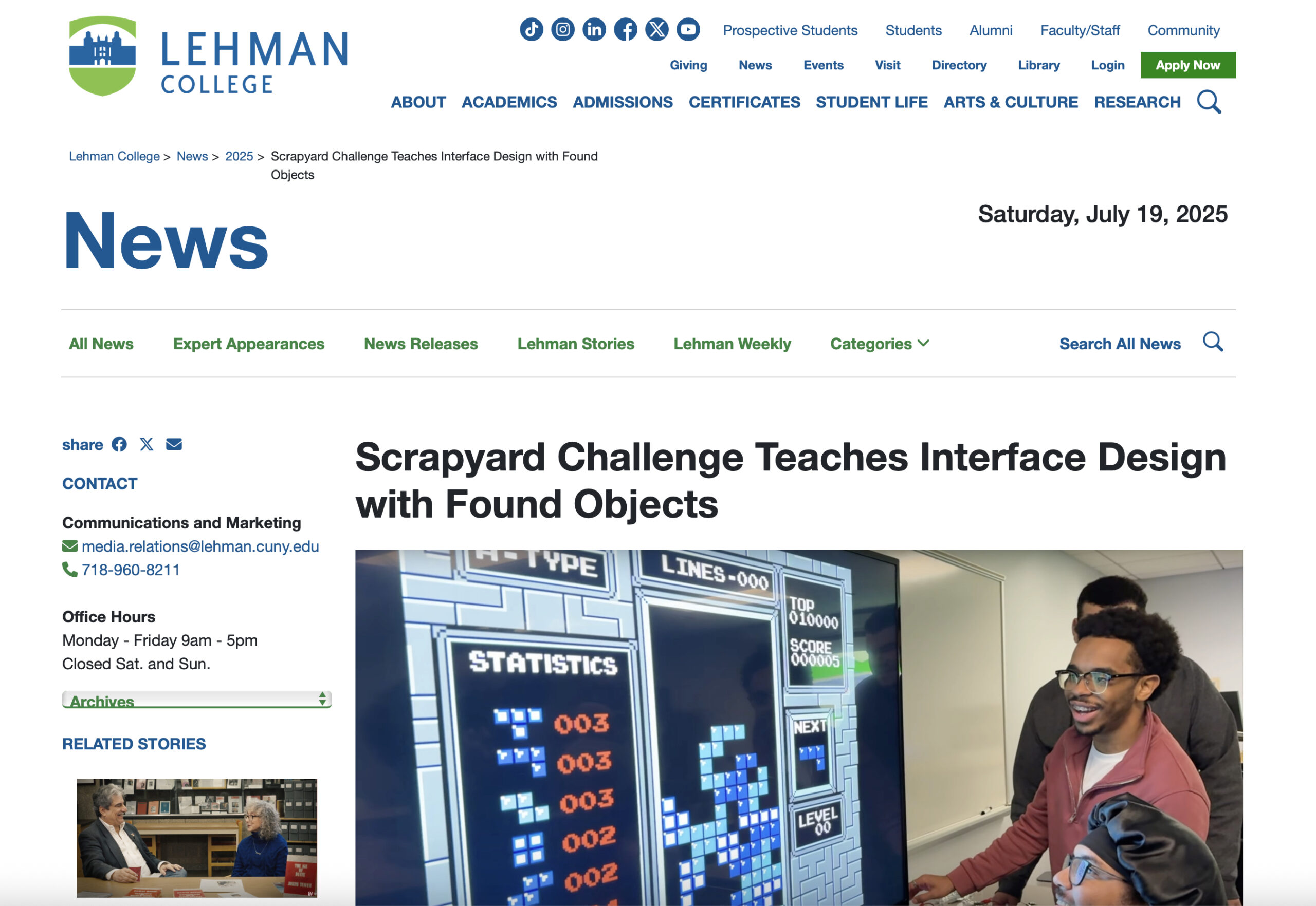 Scrapyard Challenge Teaches Interface Design with Found Objects, Lehman College News, July 17, 2025